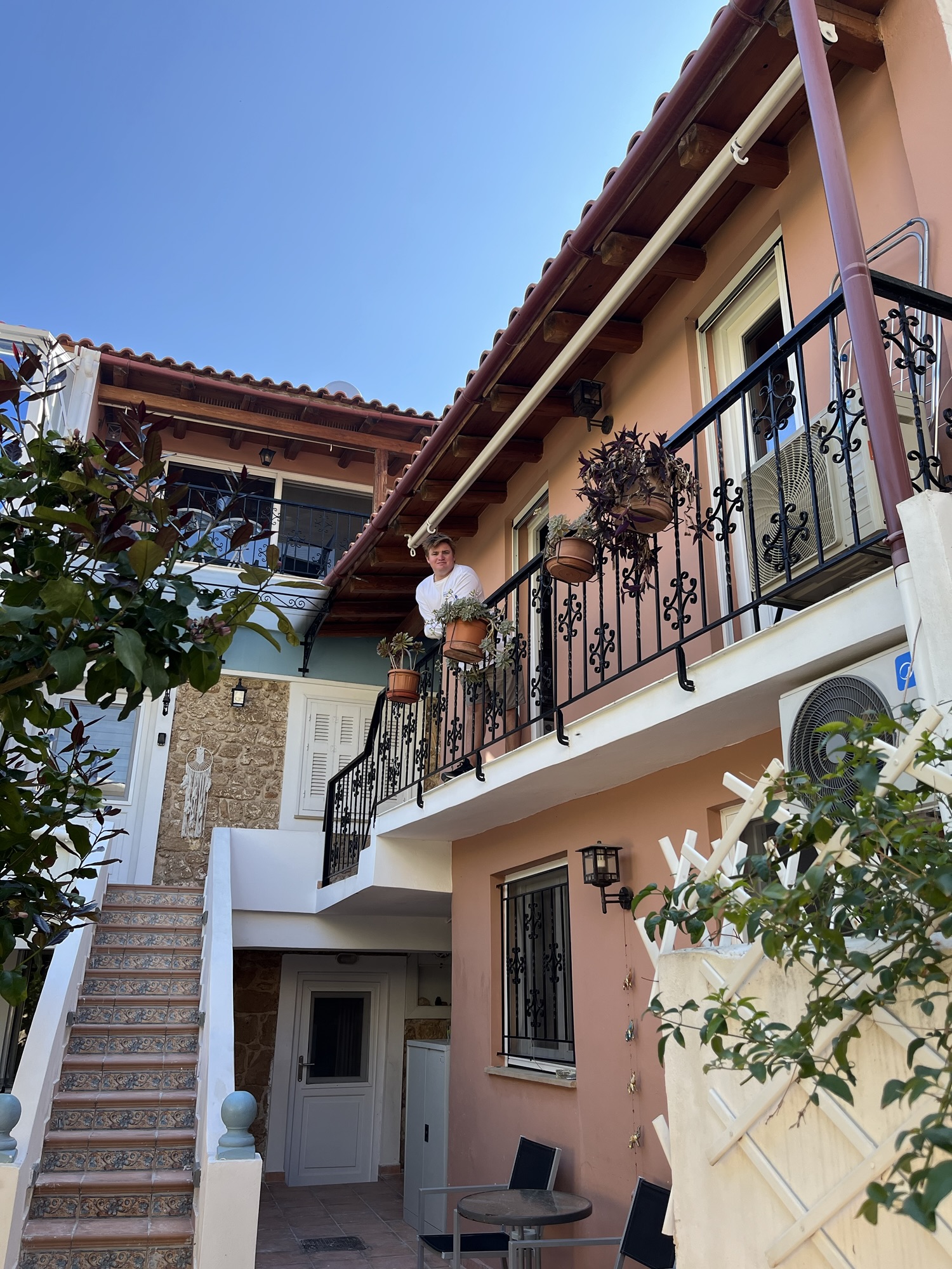If you’re not sleeping onboard during your stay, there are plenty of options available onshore. AirBNB and booking.com are the go-to, with options for poolside villas, apartments and hotels. My personal favourite is a true Airbnb – Stenaki home. With four different apartments, from cosy studios to masionette ensconced in a pristine courtyard with shared outside space, I keep coming back. It remains effortlessly peaceful, nestled behind Aegina’s iconic Isodia Theotokou Church and only a few minutes walk to the harbour. The properties are managed by husband and wife Vangelis and Fenela and they could not be kinder or more accommodating. The properties embody what I really love about Airbnb – staying in lovey homes with wonderful hosts.